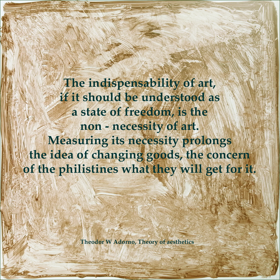 An abstract painting, nearly impossible to photograph because of light reflections. At least it turns into a thing by its own, uncontrolled , and – just nothing but a digital surface, an illusion of a painting, with unreal colours, invisible brush strokes; just everything which makes a painting a painting.