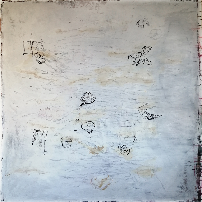 bird´s struggle / 100 x 100 / oil, enamel, acrylics on canvas / 2014