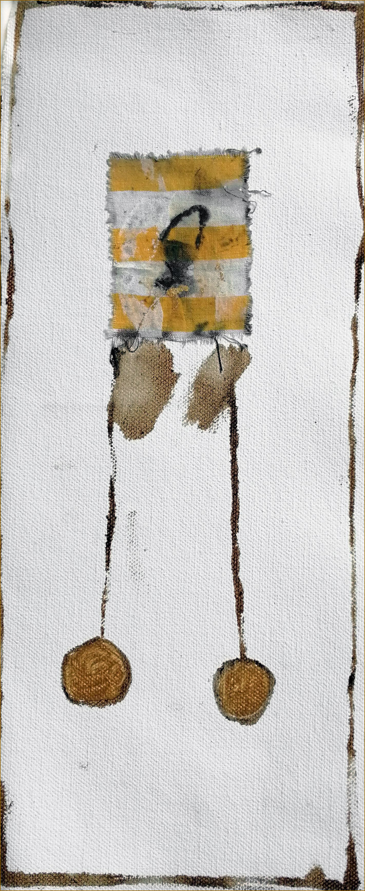 joker´s pendulum / 12 x 30 / fabric, tar, enamel on canvas / 2020