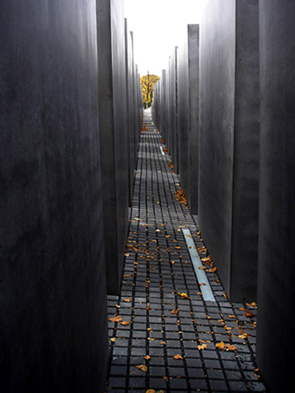 Terrorns topographie nästa. Det nya minnesmuseet över nazismens förbrytelser inger tystnad. En bred dokumentation över ett våld vilken trängde genom och dominerade en hel statsapparats institutioner och verksamheter totalt. Bredvid dess tortyrkällare i Gestapos dåvarande central, man ser rakt ner och tror sig se massgravar och stum oföreställbar förtvivlan, därav nog denna stillhet över hela platsen, trots hundratals besökare, en sen lördagseftermiddag. Samma tystnad som på Taryn Simons utställning .Espressodags. Vi är tysta, för ovanlighetens skull.