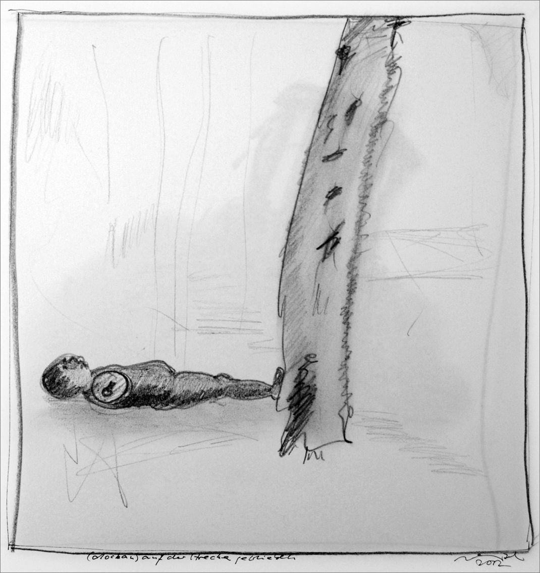 Berlin – sketch ( entrance figure ) / 30 x 30 / chalk, enamel, graphite on paper / 2015