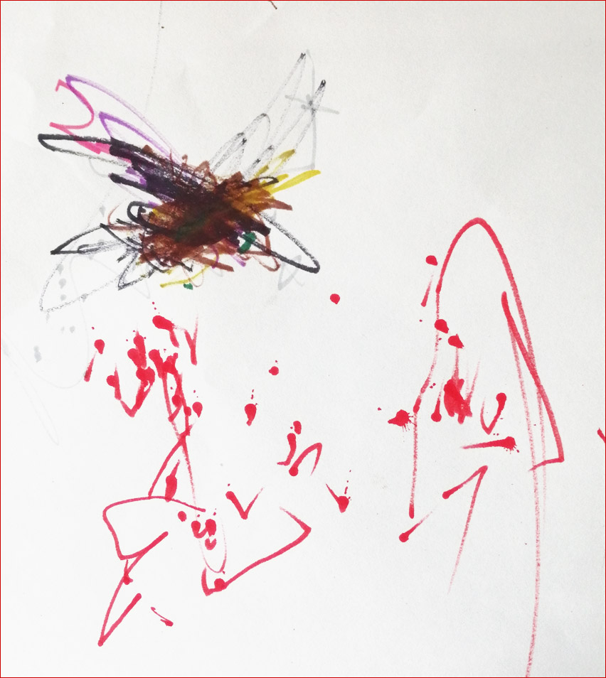 Laban & bird / sketch by my grandson Lowe, 4 and a halv years old