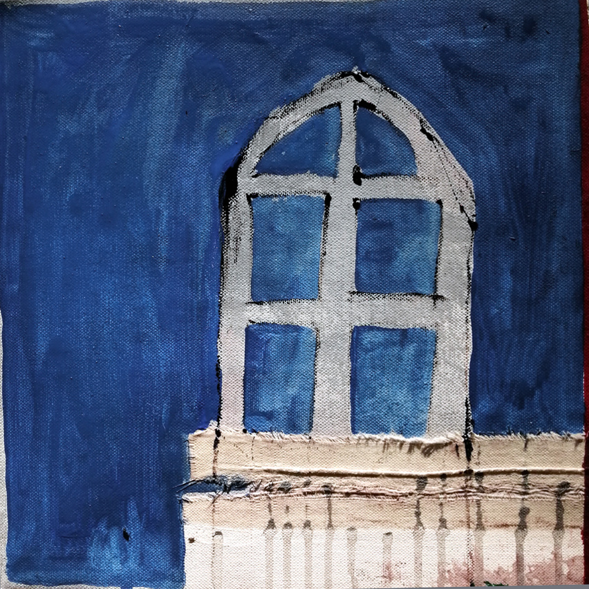 blue view / 30 x 30 / tar, acrylic on canvas / 2021