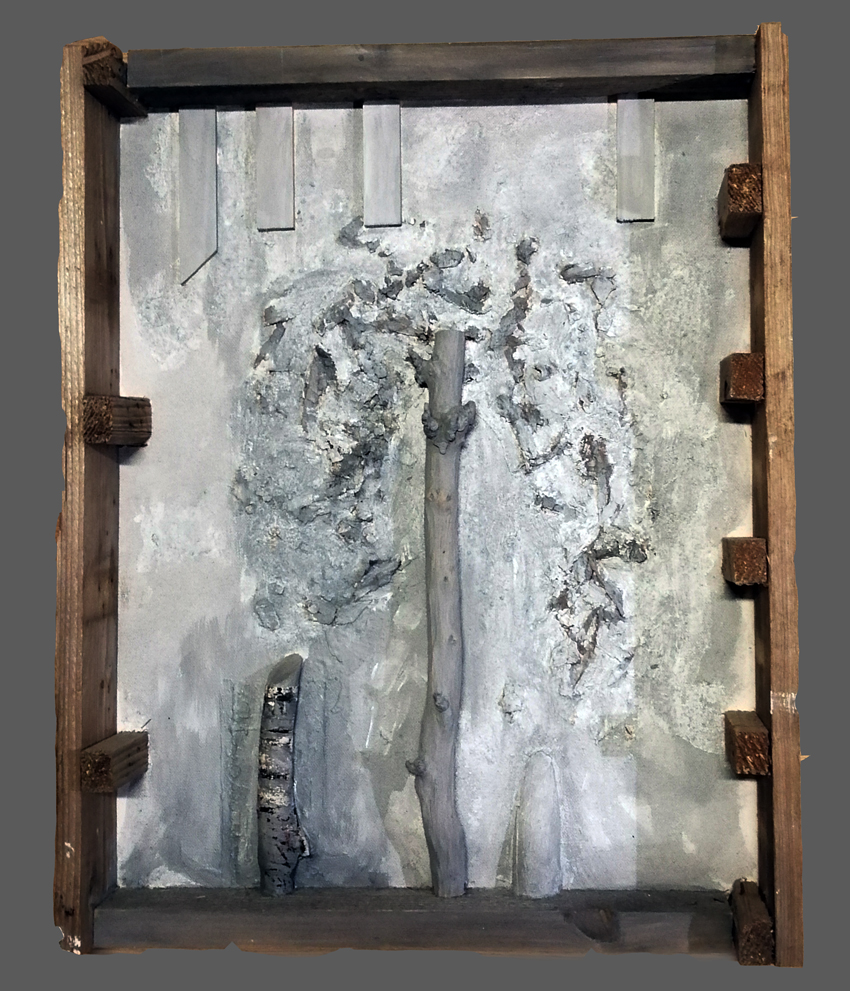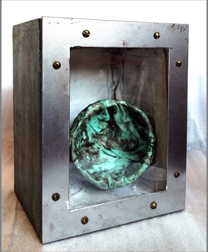T / bird´s nest behind glas / 31 x 39 x 9 / painted wooden box / – 2023
