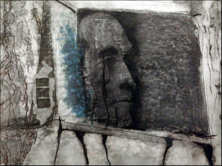 …with some help from Man Ray´s photography of Marcel Duchamp in circa 1923. This is part of a larger drawing.