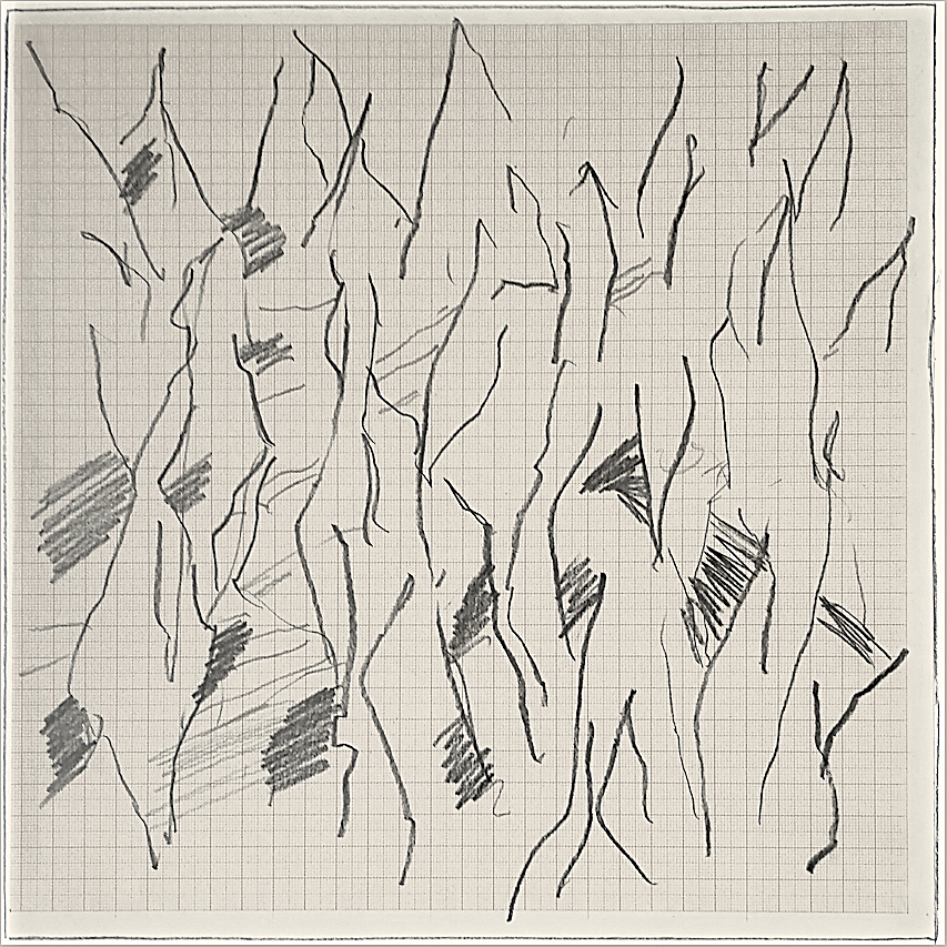 2018 08 / pencil on graphic paper / 30 x 30 / 2018 (sketch for pink woods )