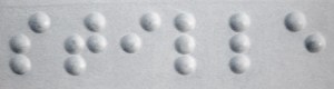 ( picture below: silence – STILLE – in German on Braille, the blind peoples written characters ; photo by Earwolf)