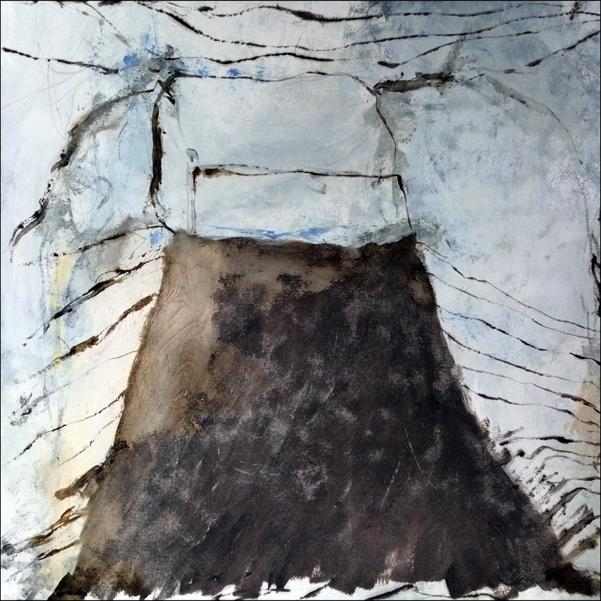 Island- mountain / 30 x 34 / tar, enamel, acrylics, oil / 2020