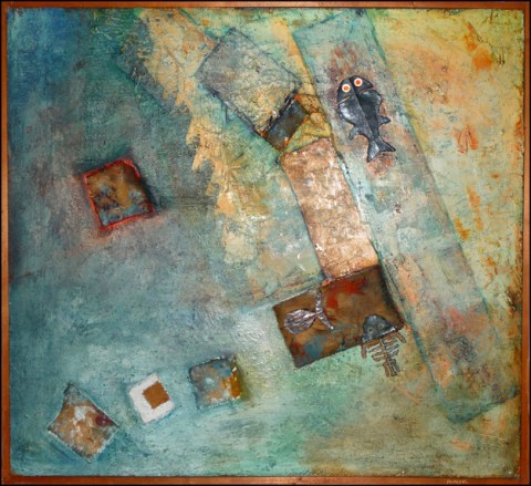 was painted in the mid sixties. It shows a kind of chart / map which maybe can be seen as showing a part of the Podalida coast. More …