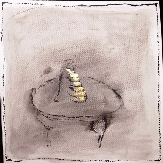 cake on a table / 30 x 30 / oil, enamel on paper / 2021