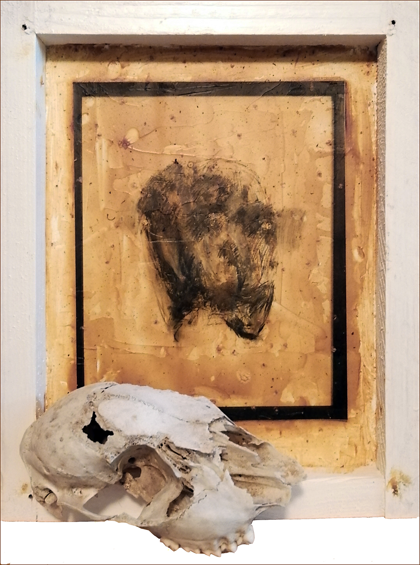 two skulls / 32 x 39 / graphite, photograph, fat, object / 1995