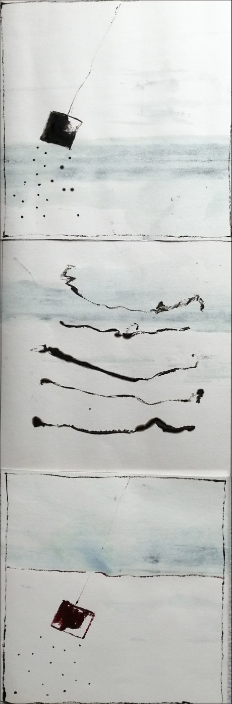 Sea sound membrane / sketches / project / 30 x 30 each / tar, acrylics on paper / 2020