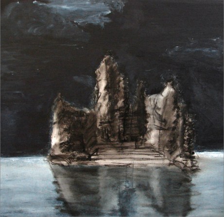 island (rock) / 80 x 100 (slightly cropped) / oil on canvas ) 2012 // sound remix of piano dee / 2020