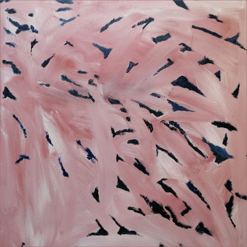pink woods / 60 x 80 (slightly cropped ), oil, enamel on canvas / 2018 . See even yesterdays sketch.