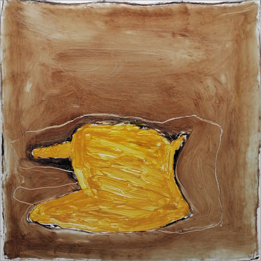 yellow lake / 30 x 30 / enamel, oil, photographic paper / 2021